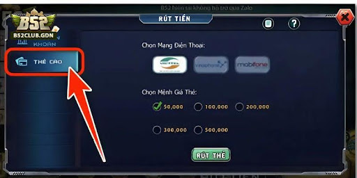 Withdraw money from your B52 Club account via scratch cards.